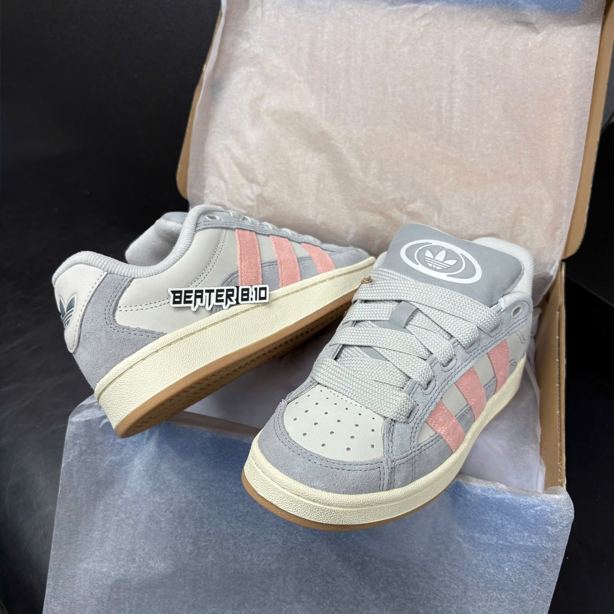 Phiên bản CAMPUS 00s Beta Grey Three – JH9780 là lựa chọn cực “đúng gu” cho fan streetwear hiện đại yêu vibe Y2K retro. Đến từ Adidas, đôi giày giữ form Campus 00s dày dặn đặc trưng, kết hợp tone xám Beta Grey trung tính cùng 3 sọc hồng pastel tạo điểm nhấn mềm mại nhưng vẫn cá tính. Tổng thể dễ phối, mặc hằng ngày vẫn nổi bật.