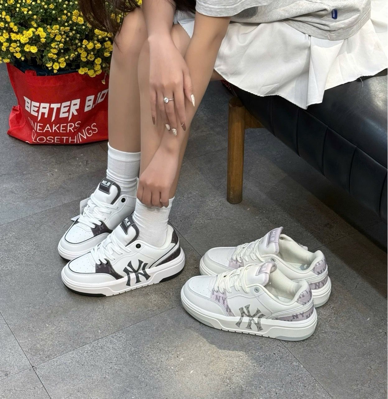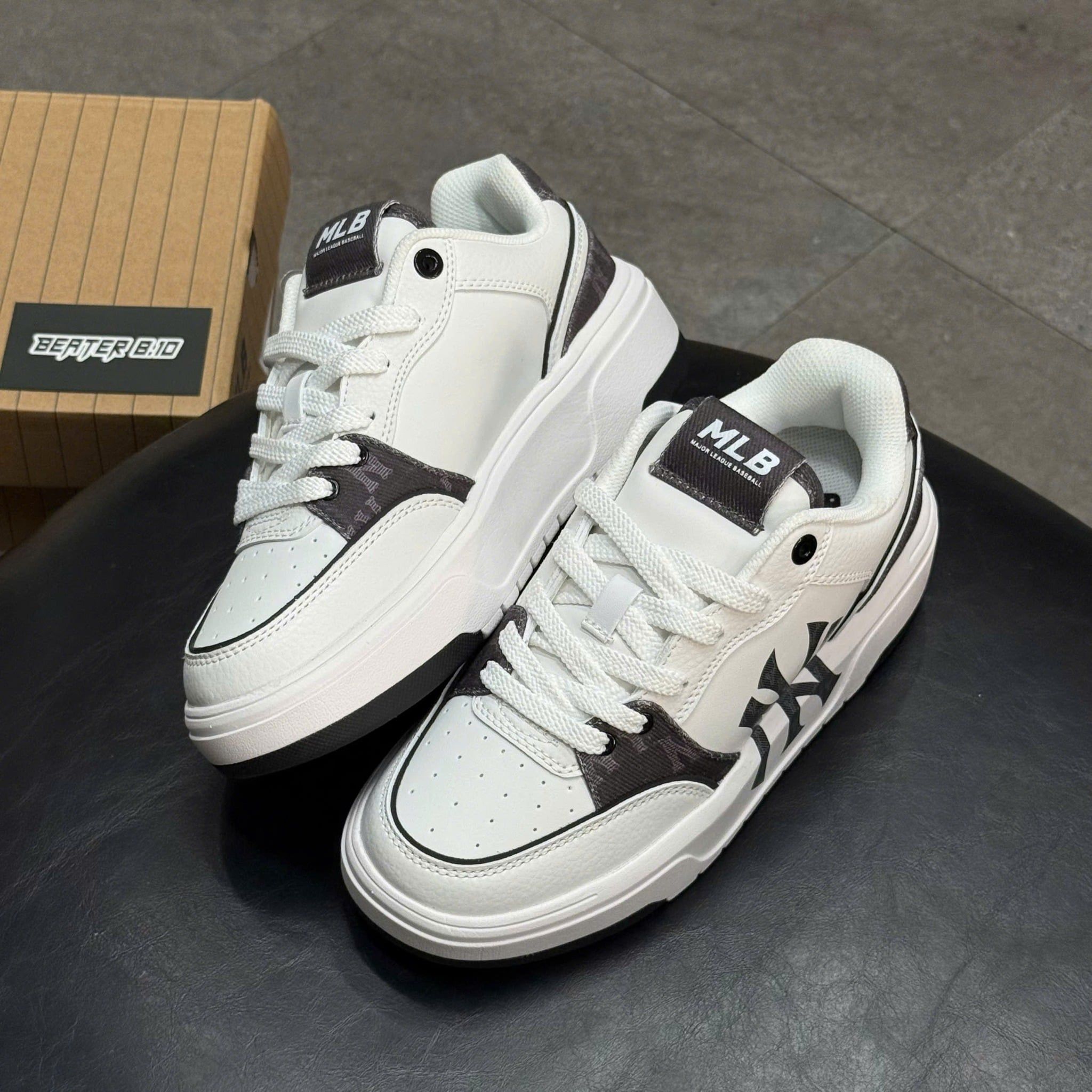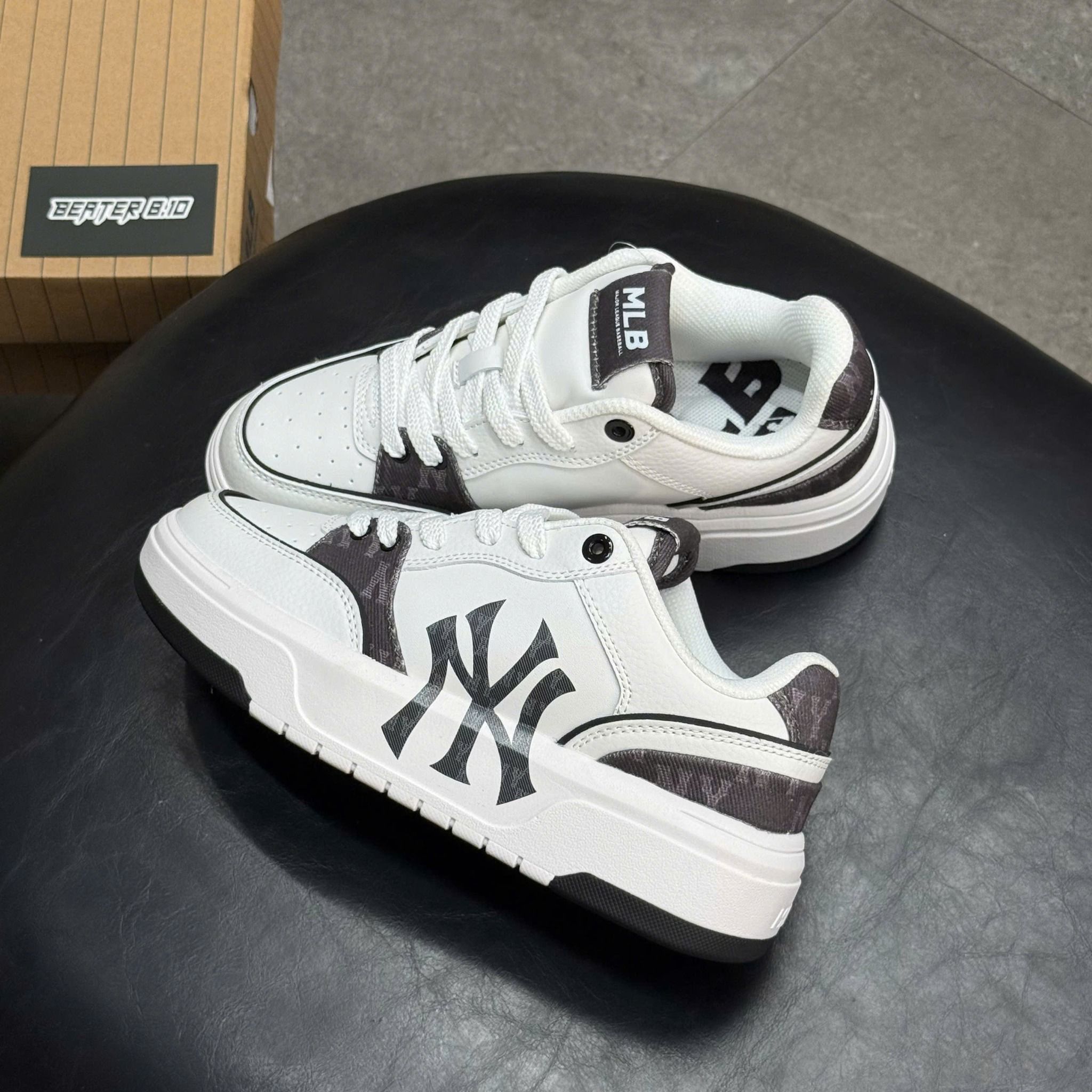 Nếu bạn đang tìm một đôi sneaker đế dày bắt trend – thiết kế lạ mắt – phối đồ là nổi, thì MLB Chunky Liner Pocket Monogram là lựa chọn rất đáng xuống tiền. Phiên bản NY Black sử dụng tông đen chủ đạo, kết hợp hoạ tiết monogram + túi pocket đặc trưng, mang lại cảm giác vừa mạnh mẽ vừa thời trang – đúng tinh thần streetwear hiện đại.