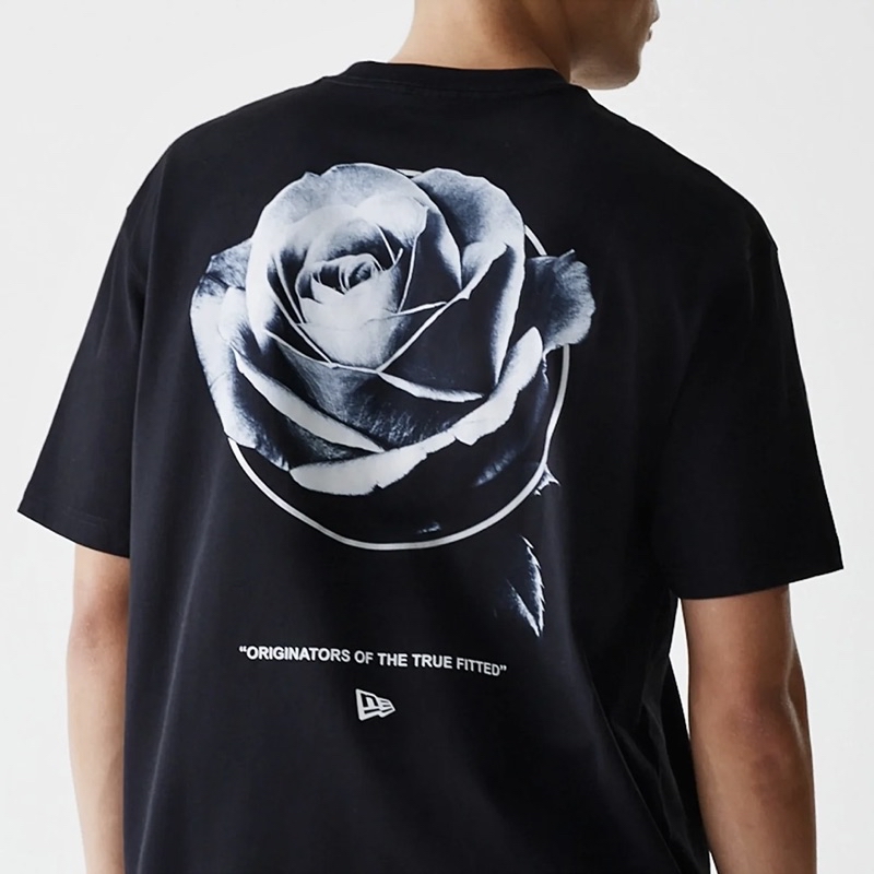 • Thiết kế độc đáo: Áo thun màu đen với họa tiết hoa hồng và logo NY, tạo điểm nhấn tinh tế và thu hút.
