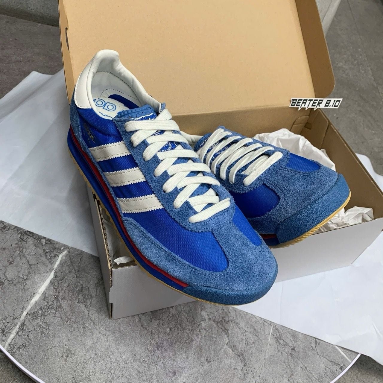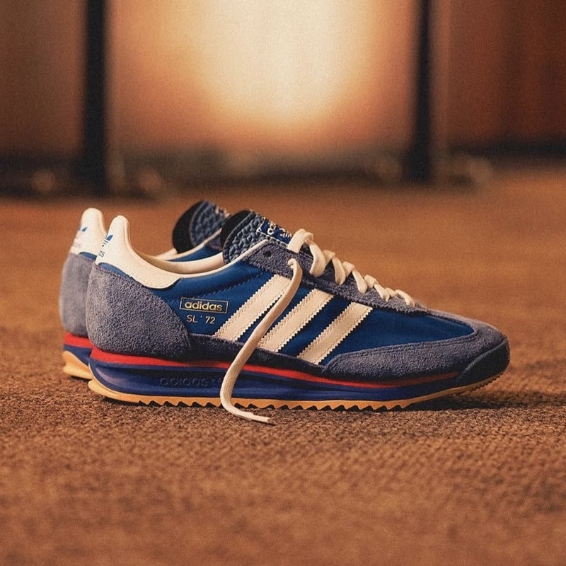 🔸 Thiết kế retro: Lấy cảm hứng từ mẫu giày ra mắt năm 1972, Adidas SL 72 RS ‘Blue Scarlet’ mang đến vẻ đẹp cổ điển với phối màu xanh dương và đỏ tươi, tạo nên sự trẻ trung và năng động.