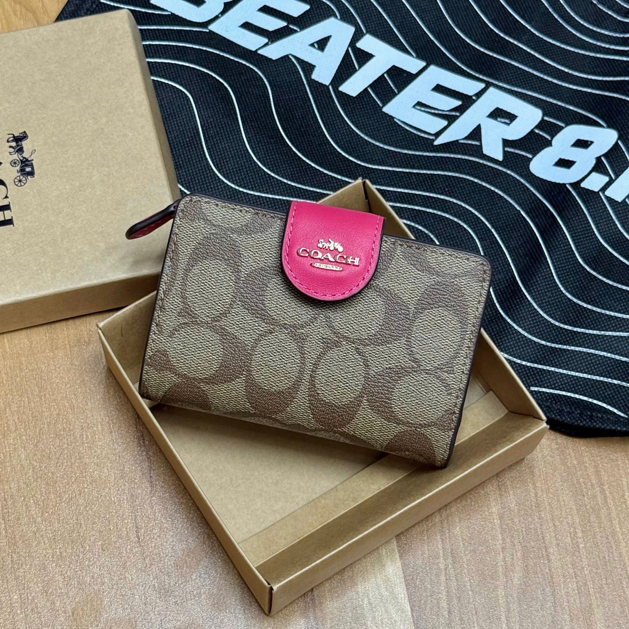 Ví Coach Signature Canvas C0082 nổi bật với sự kết hợp giữa khaki cổ điển và hồng pastel ngọt ngào, tạo nên một item vừa thanh lịch vừa trẻ trung – đúng chuẩn "kẹo ngọt có gu"!