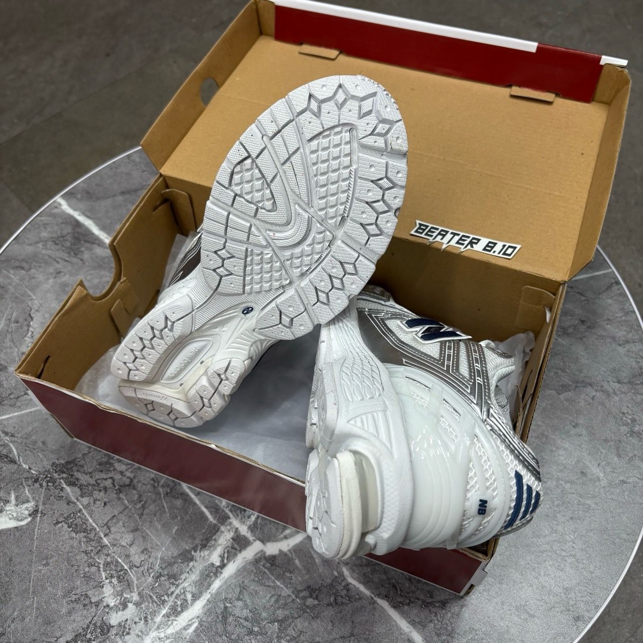 Lên chân là nổi bật ngay! New Balance 1906R U1906RCM mang phối màu trắng - xanh navy - bạc ánh kim đầy cuốn hút, chuẩn phong cách retro-runner Y2K đang thống trị làng sneaker.