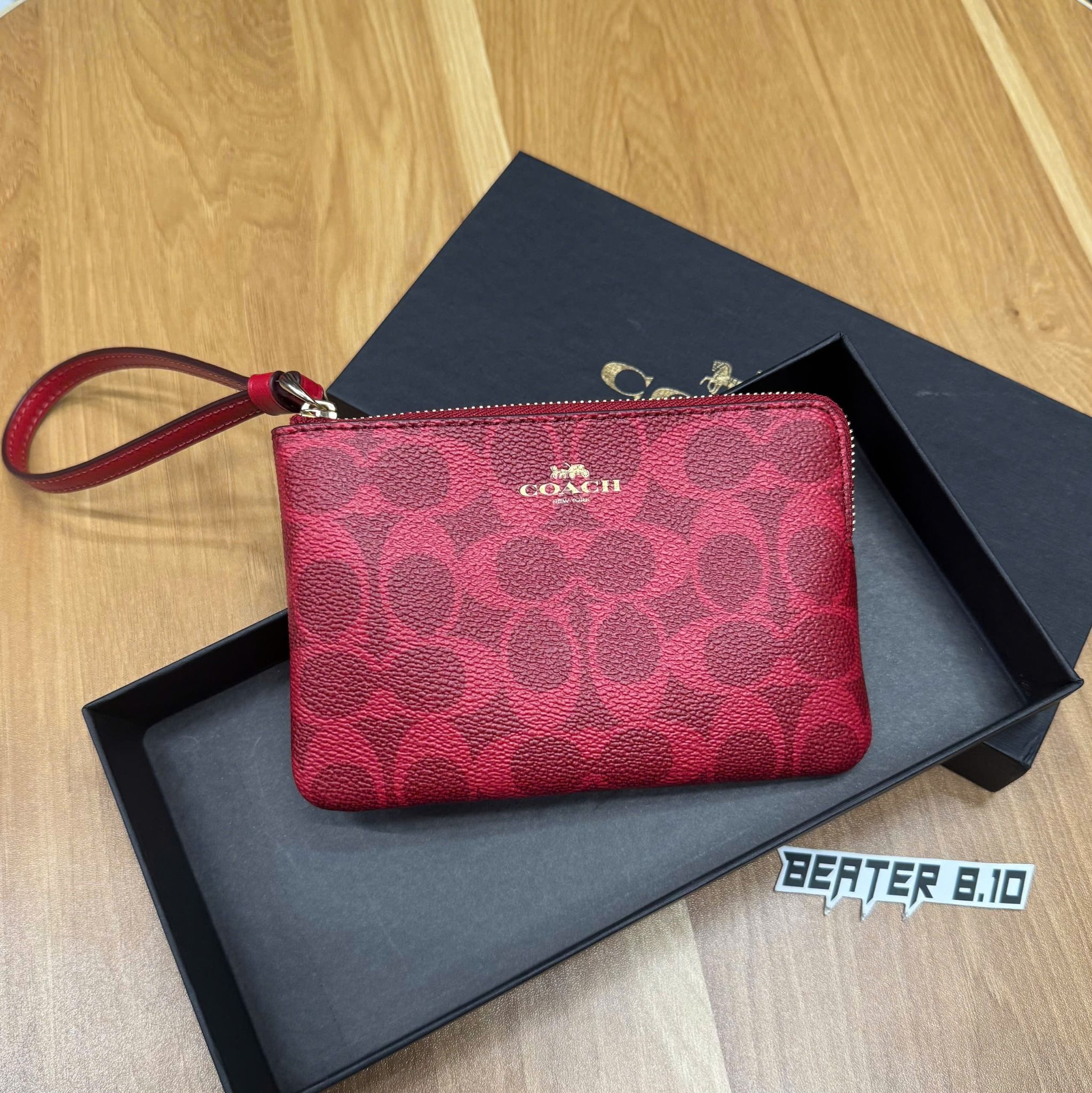 Ví Cầm Tay Berry Red Corner Zip – Coach H2592 | Nhỏ Gọn Xinh Xắn – Nổi Bật Chuẩn Gu Mỹ
