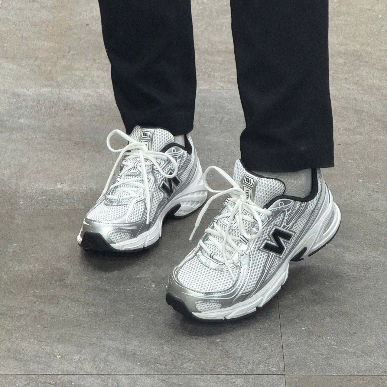 Phối màu White – Silver Metallic – Navy: Trung tính, sang trọng, dễ phối outfit.