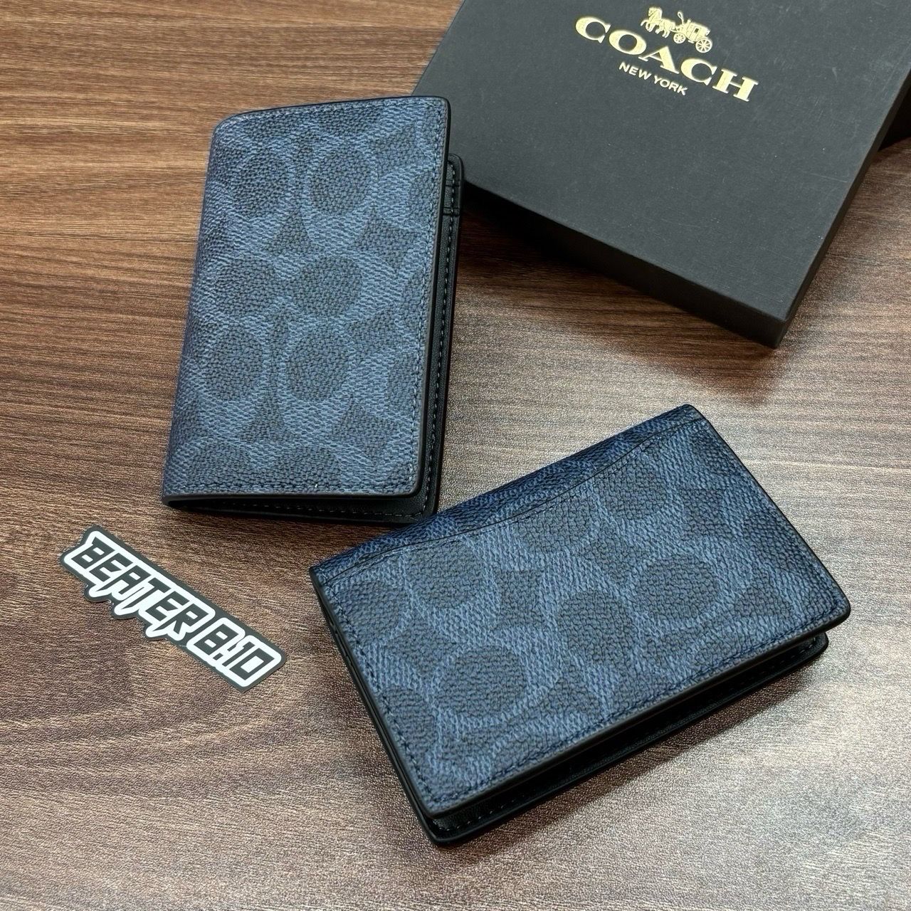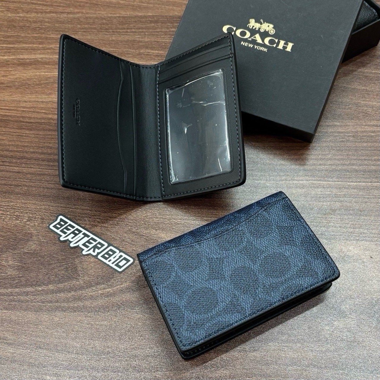 949 - Ví Coach Card Holder Signature Canvas Navy - F2581 - CW367