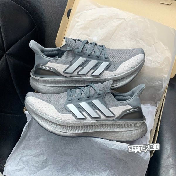 Phiên bản Ultraboost 5 Grey Four mang thiết kế thể thao tinh giản, tập trung vào trải nghiệm mang êm và ổn định. Phối màu xám trung tính giúp đôi giày dễ dàng kết hợp với nhiều phong cách, từ sporty năng động đến streetwear hằng ngày.