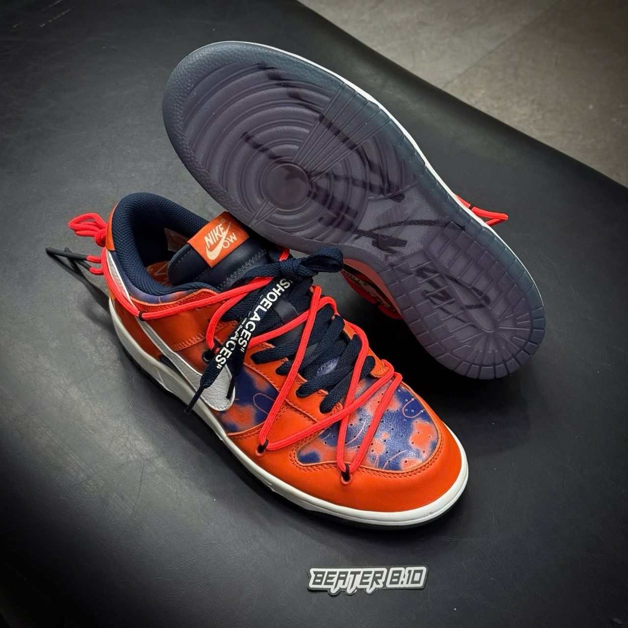 🔸Thiết kế độc đáo: Đôi giày này là thành quả hợp tác giữa Nike, Off-White và nghệ sĩ graffiti huyền thoại Futura. Với phối màu ‘Syracuse’ nổi bật, sự kết hợp giữa cam và xanh navy tạo nên vẻ ngoài ấn tượng và hiện đại.